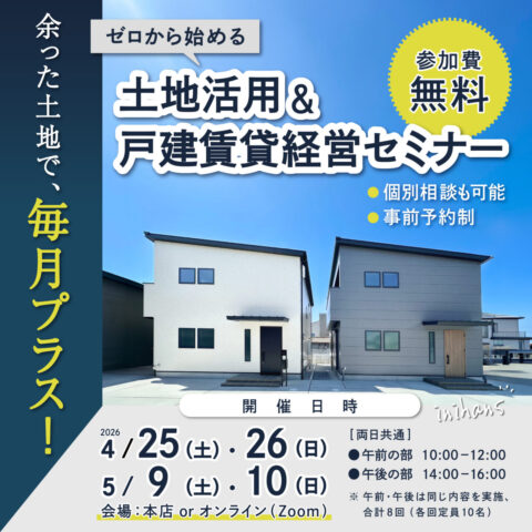 【無料セミナー】土地活用・戸建賃貸経営セミナー|余った土地で毎月プラス!