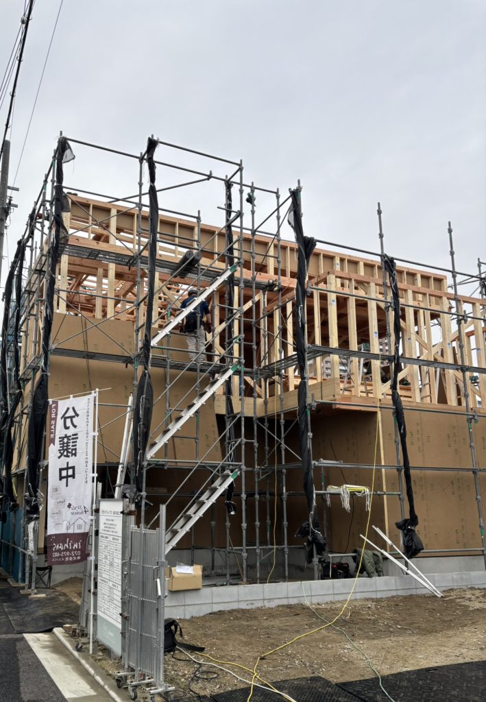 私が入社してすぐ、大阪市城東区諏訪のモデルハウスの上棟工事がありました🎉