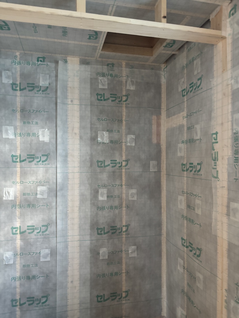下地の施工や断熱工事が進んでおり、家のカタチが徐々に見えてきました。