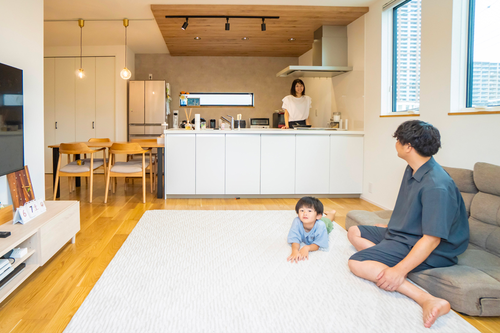 リビングを中心に、家族が自然と集まれる空間をつくることを一番に考えました。