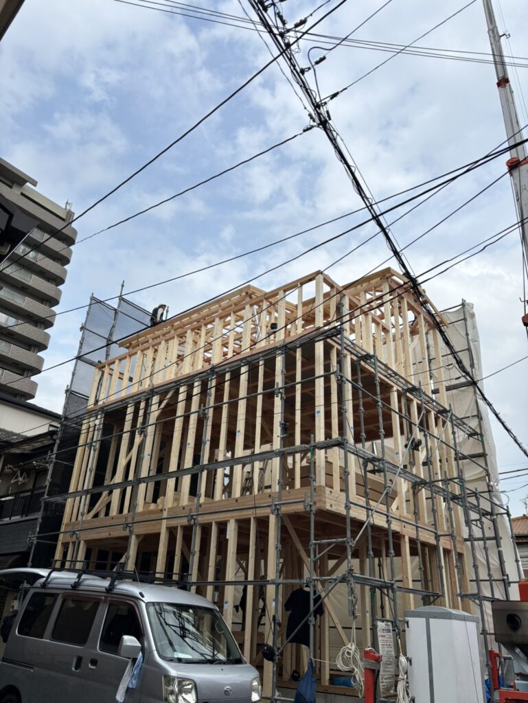 大阪市内の三階建て こちらもいよいよ大工工事が始まるというワクワク感です♪