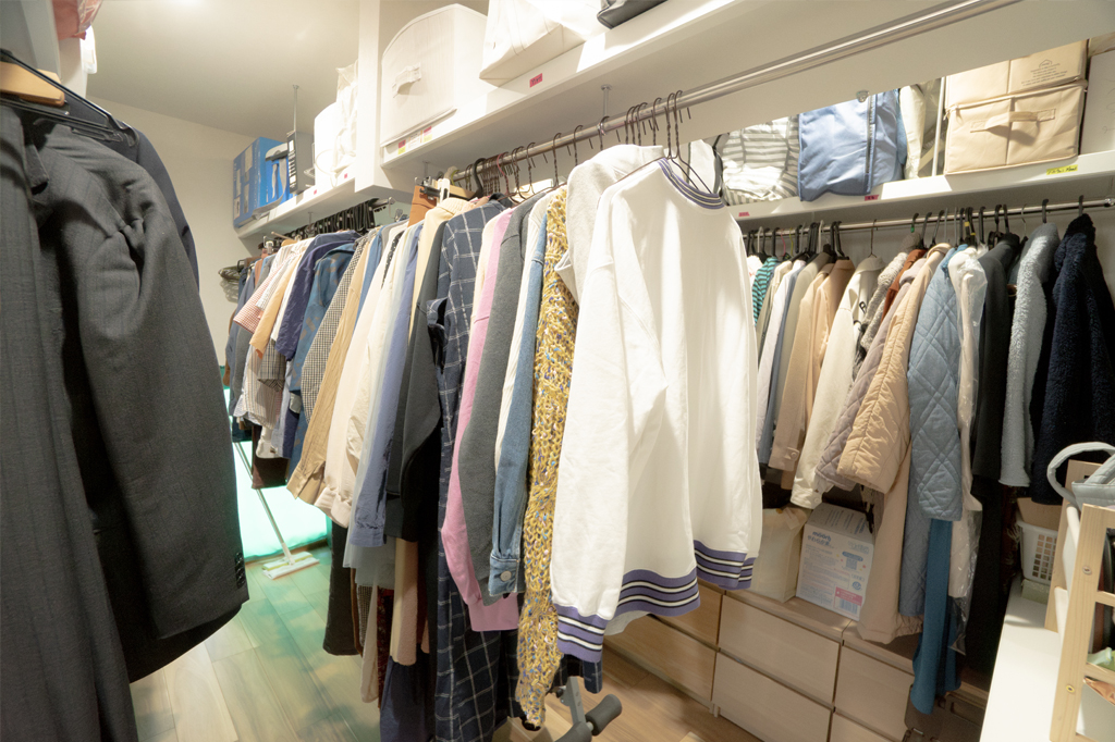 ポールハンガーや使いやすい収納棚を置いて、自分で持ち物を管理しやすい“かっこいい空間”になっています。