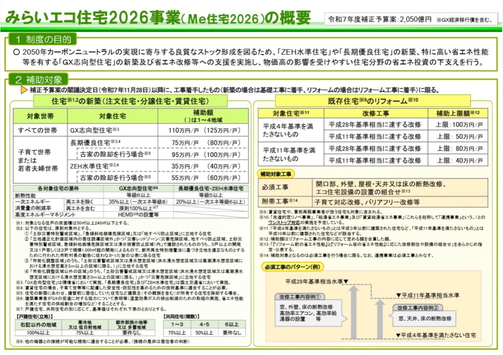 『みらいエコ住宅2026事業』(Me住宅2026)