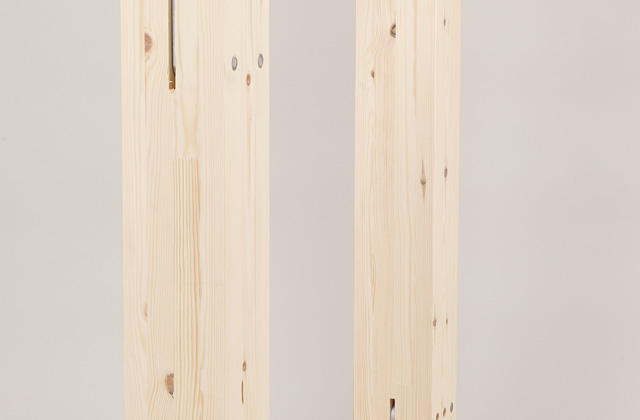 パワービルド工法の木材同士の接合は、専用金物を用いてドリフトピンで緊結し、接合強度を高めています。接合部にかかる力を算出し、その強度が十分かどうか、しっかりチェックしています。