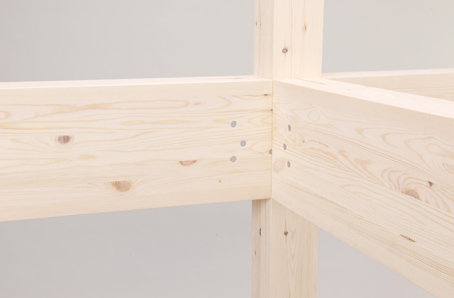 高強度「炭素鋼鋳鋼」厚さ6mmの 鋳鋼品、木材接合部を高性能専用金物で繋ぐ仕組み。