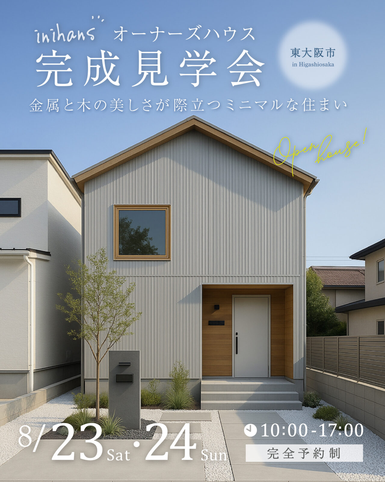 | 注意事項 | 当日はイニハンス本店(東大阪市中石切町4-2-8)にお越しください。 スタッフが会場までご案内いたします。 |