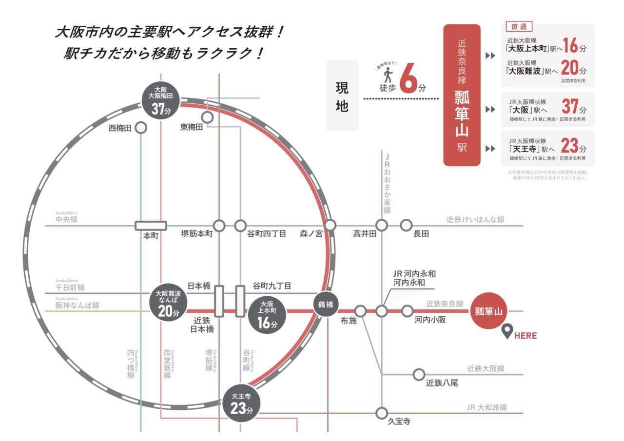 近鉄奈良線「瓢箪山」駅から徒歩5分