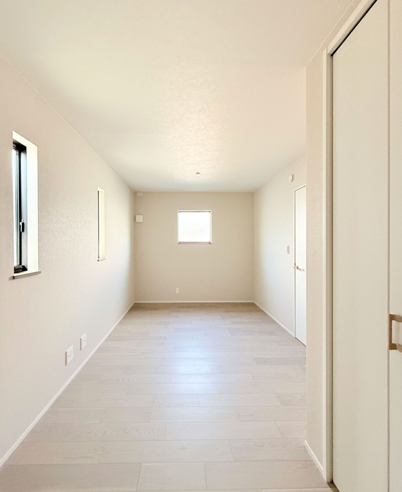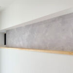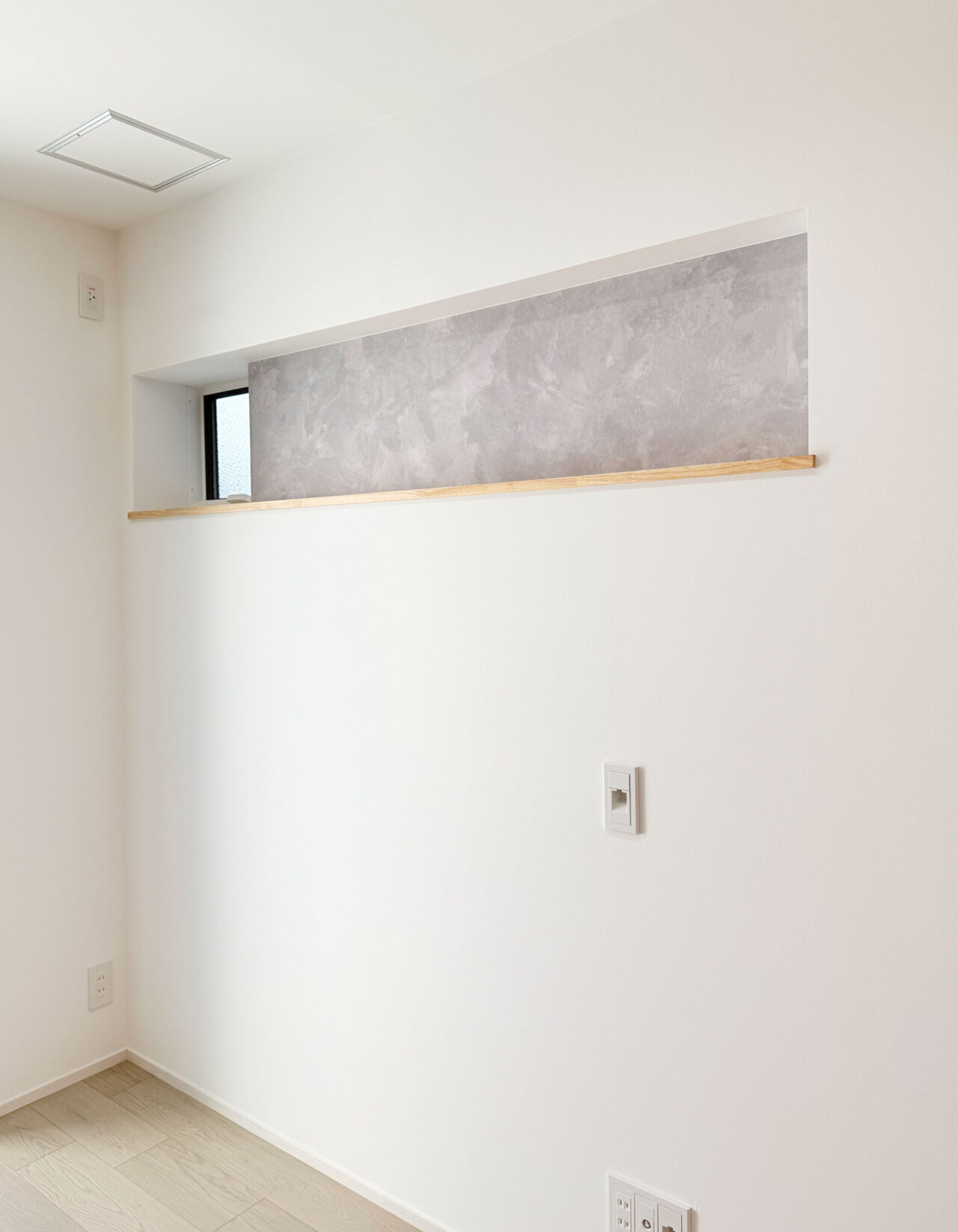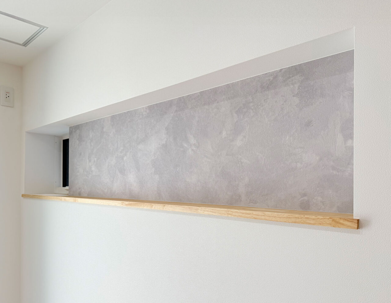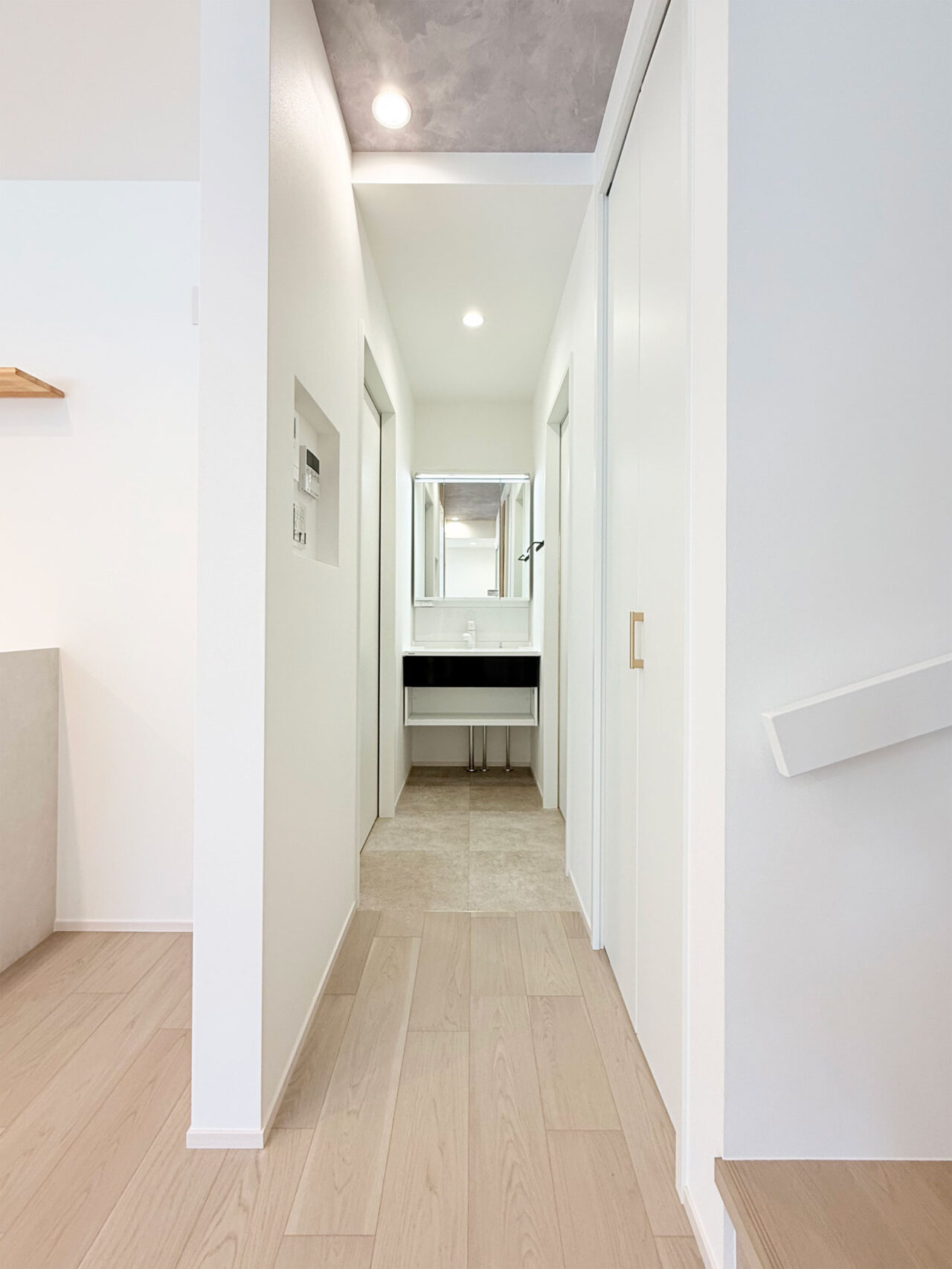・ニッチや天井のコンクリート調クロスがほどよいスパイスとなり、明るさの中に深みを感じるデザイン。