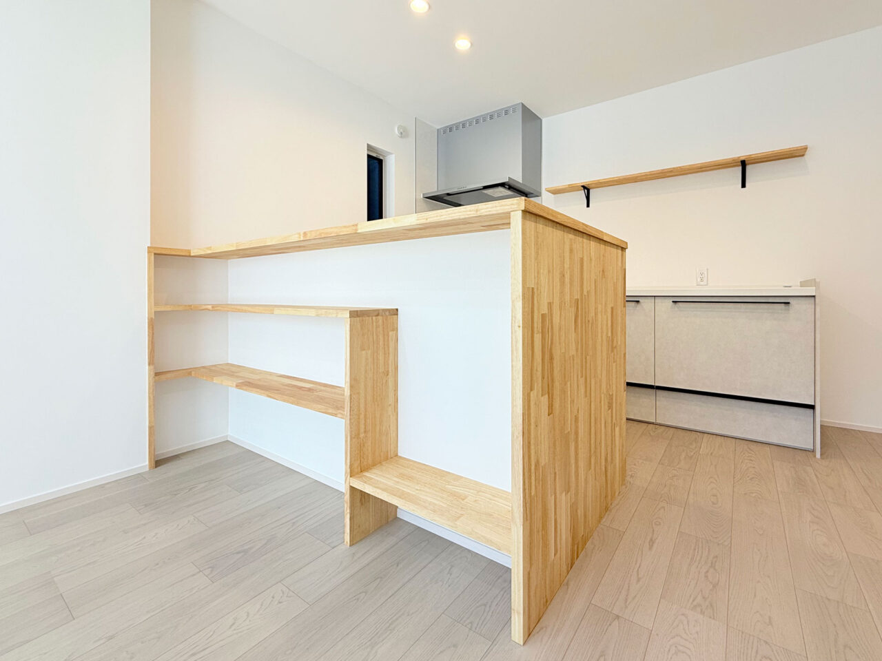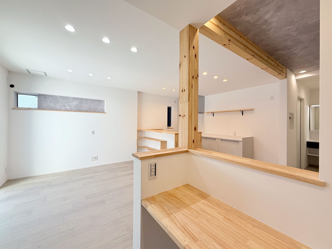・室内は白をベースに、木の質感とグレーのアクセントが調和。