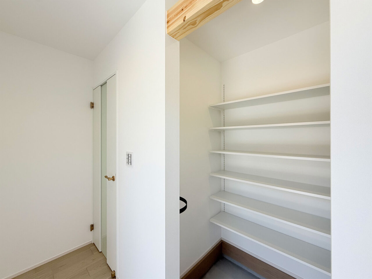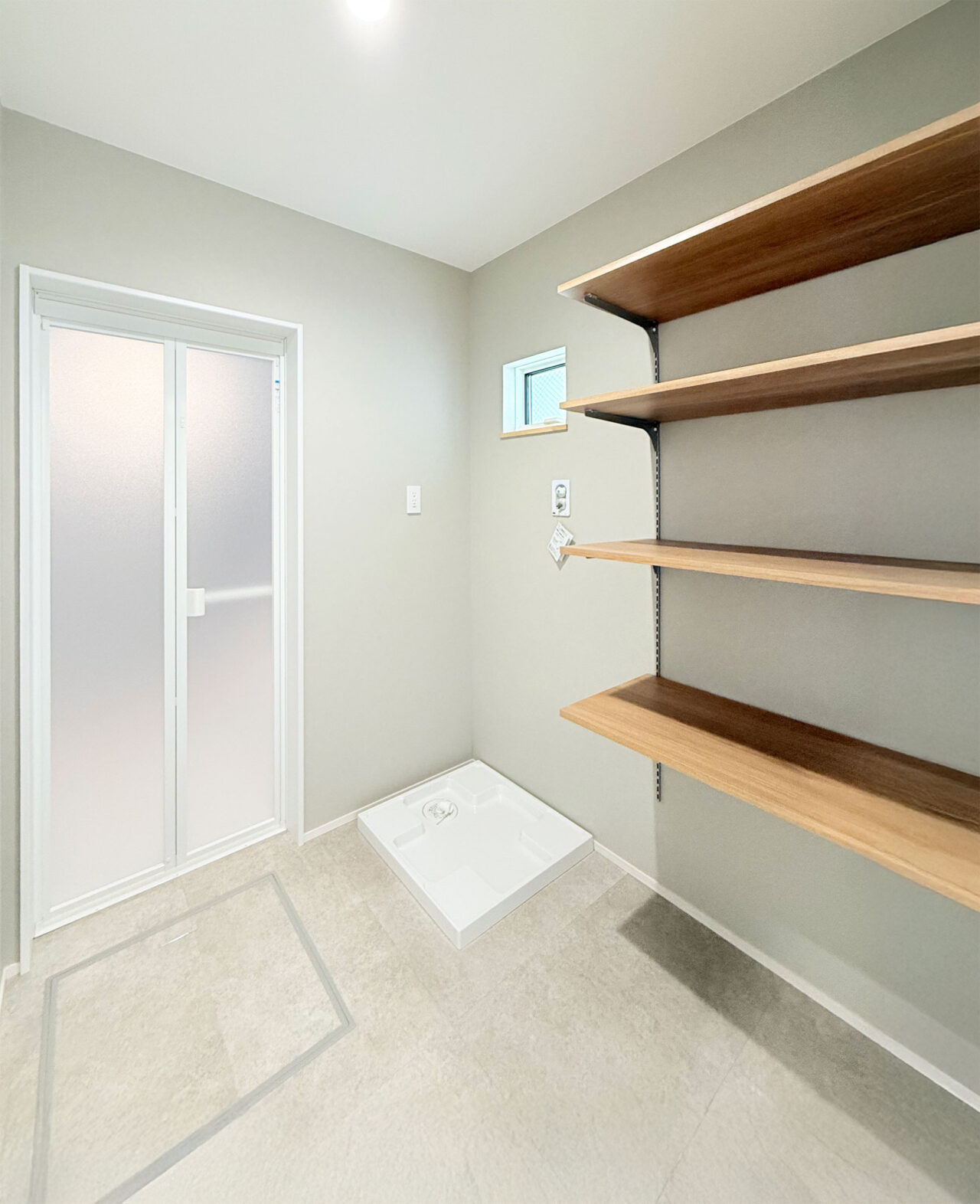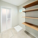 ・棚付きの脱衣室はタオルや衣類の収納にも便利。
