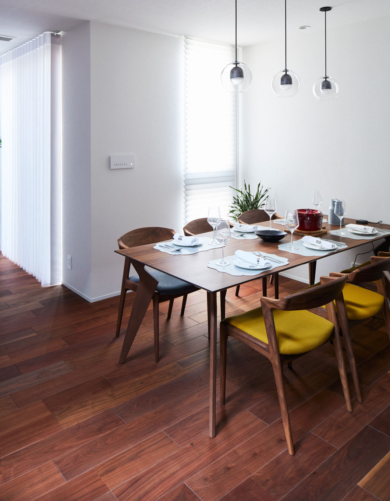 間取りは、どこにいても四季を楽しめるように設計し、中庭を囲むようにリビングやダイニングを配置。