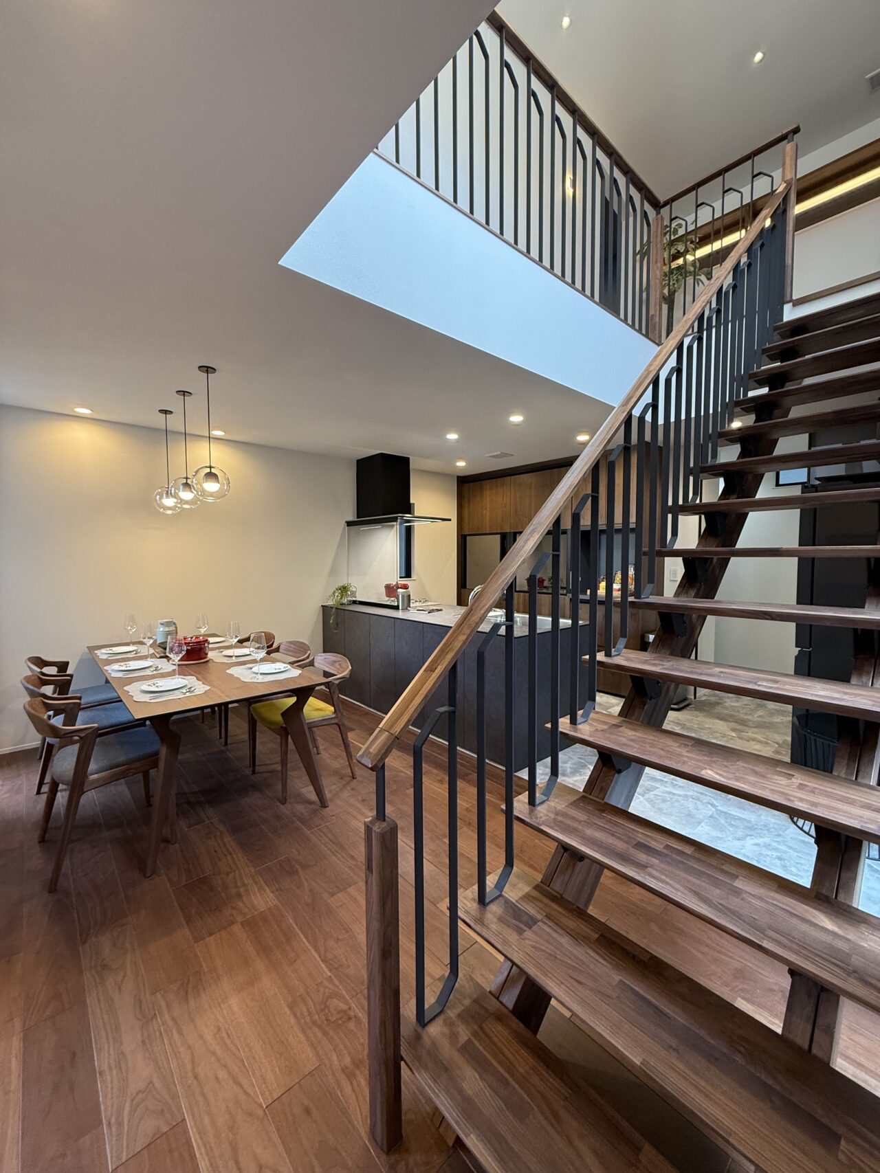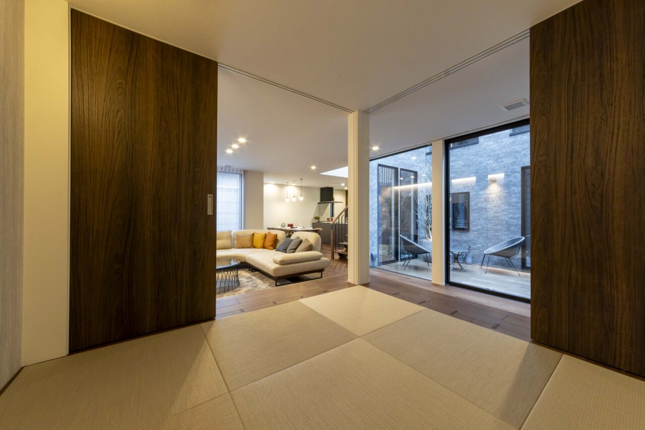 中庭を核とした空間設計により、各居室から光と風を取り込みつつ開放感を享受でき、同時にプライバシーも確保される。日々の暮らしの中で季節の移ろいや自然の息づかいを感じられ、心身に安らぎと豊かな時間をもたらす。また、ランドリースペースから中庭を経て和室へとつながる動線は、家事の効率化にも配慮された巧みな設計である。
