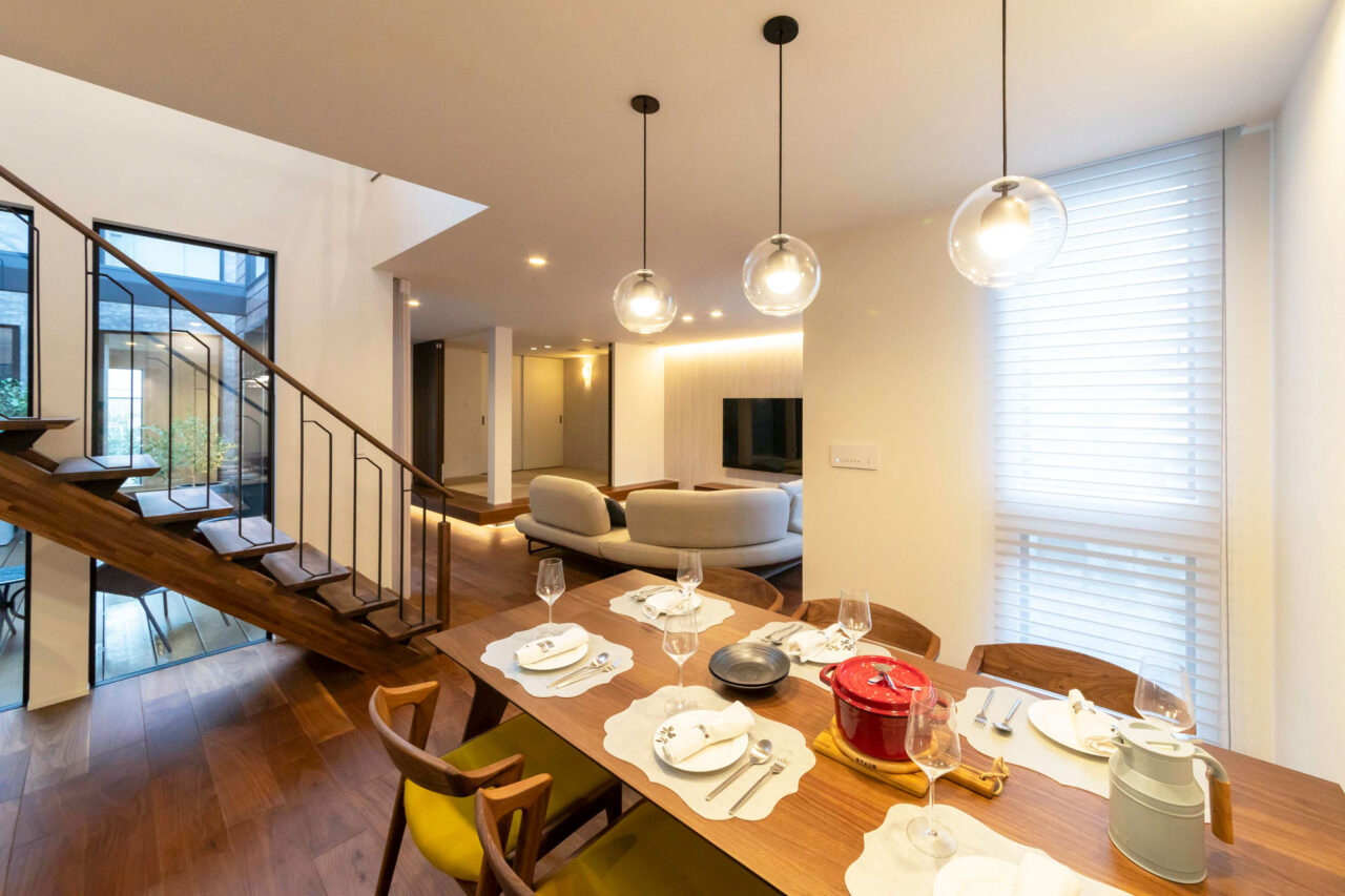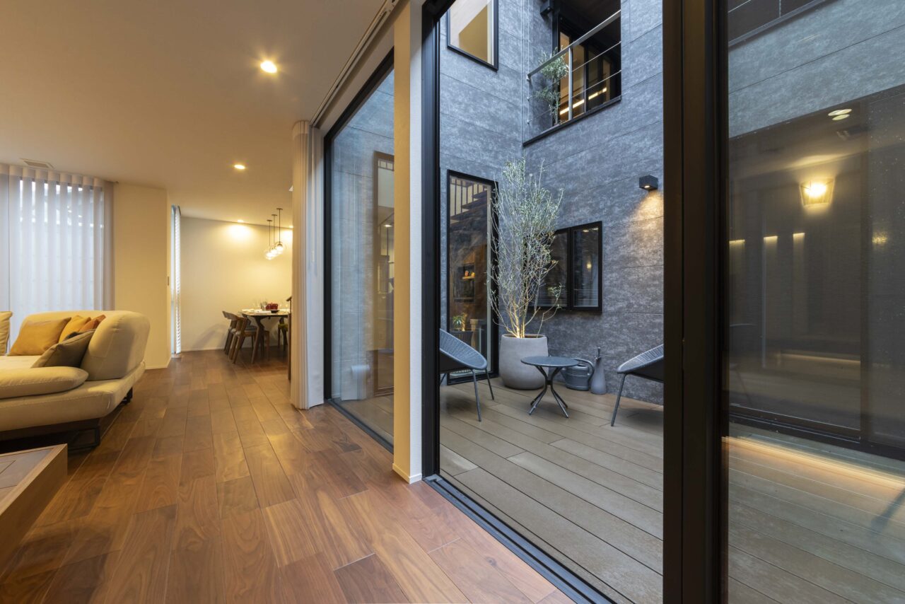 そこで、中庭を住まいの中心に配置することで、外と内を緩やかにつなぎ、光や風、季節の移ろいを身近に感じられる空間を創出。