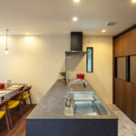 裏手には大収納を確保したパントリーを設け、見せる美しさと隠す機能性を両立。